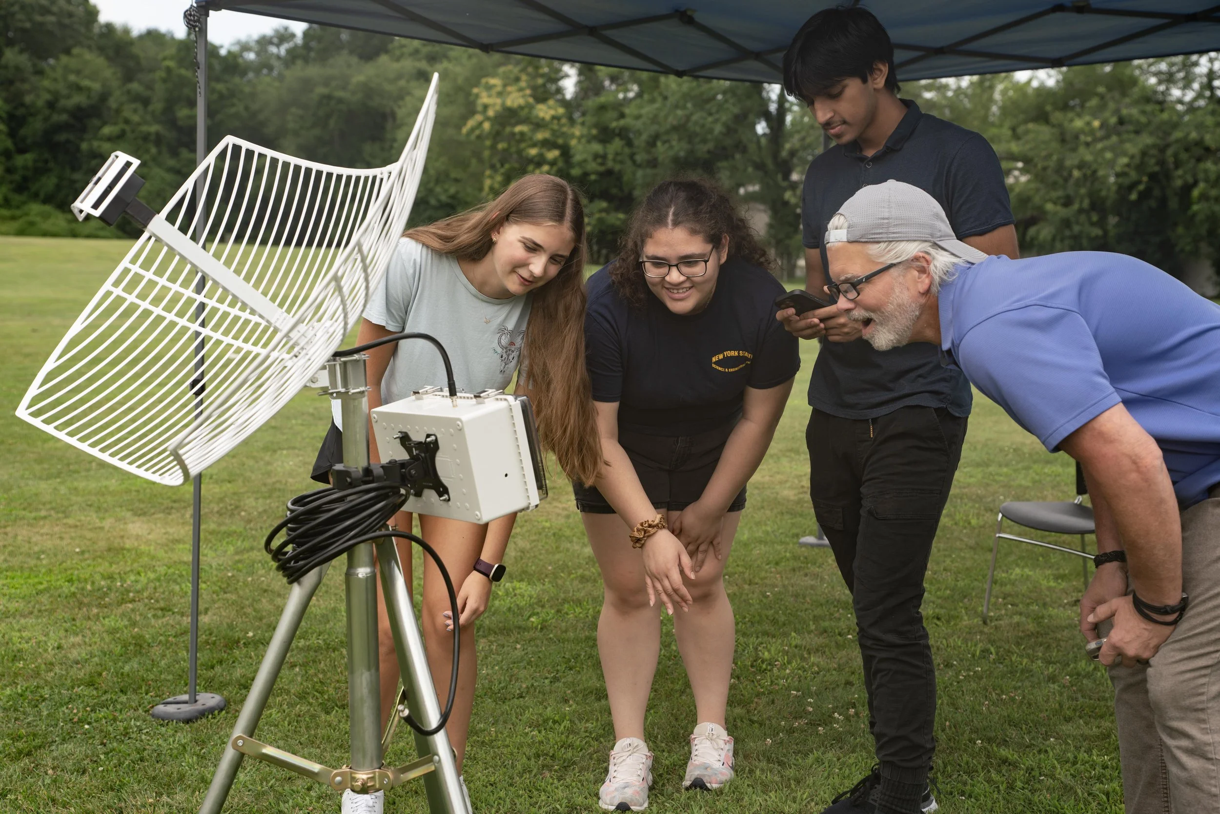 Tracking and Receiving Data: Students use the base station to track satellites overhead and receive real-time signals.